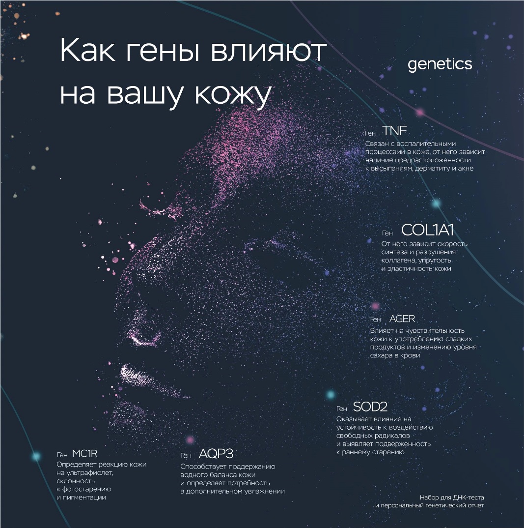 Генетика красоты Skin Care — это инновационное исследование, которое раскрывает, как именно ваши гены влияют на состояние кожи и волос.